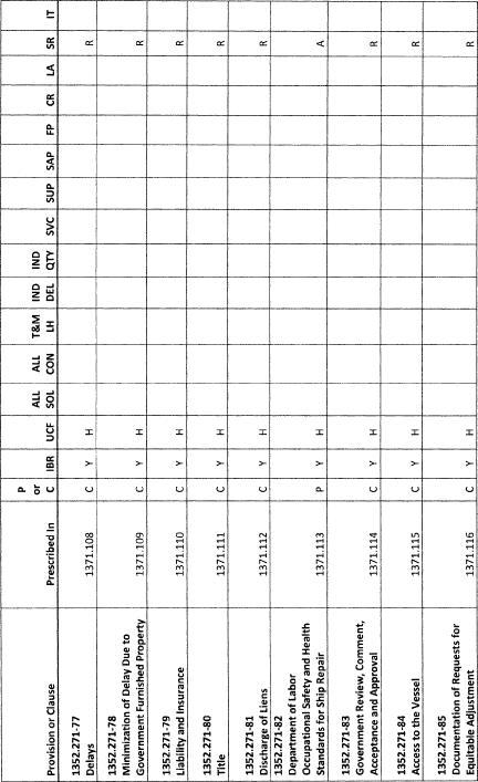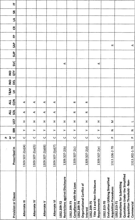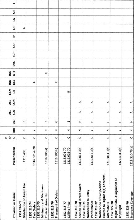 Subpart 1352.3 - Provisions and Clauses Matrix