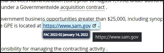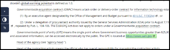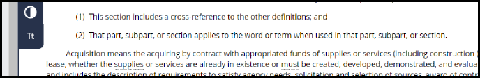 Terms and phrases that are located in any of the “Definitions” sections of a FAR are underlined in the FAR text view.