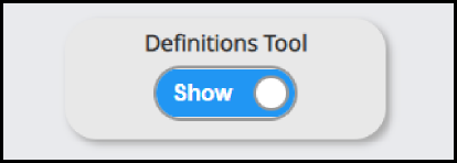 The definitions tool toggle switch is set to hide by default. To turn it on, click on the toggle.
