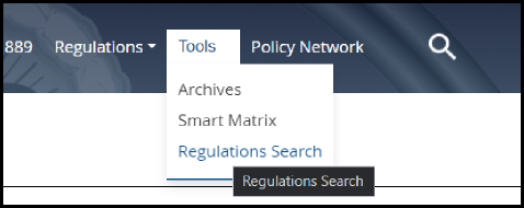 Clicking either option will bring users to the regulations search tab selected automatically: