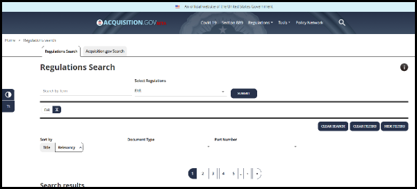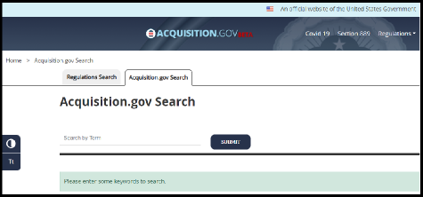 - Users can search the website without regulations by clicking over to the Acquisition.gov Search tab:
