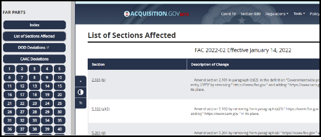 The List of Sections Affected (LSA) Highlighter is designed to draw reader attention to the latest changes in the FAR that are associated with the most recently effective FAC (Federal Acquisition Circular).