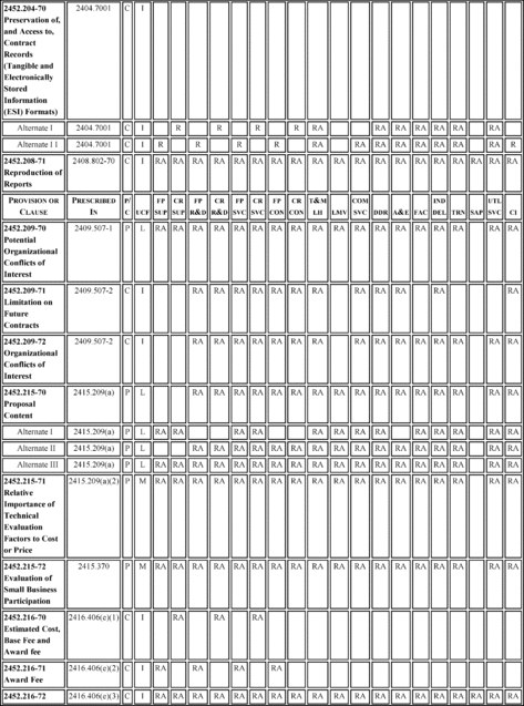 PART 2452 - SOLICITATION PROVISIONS AND CONTRACT CLAUSES