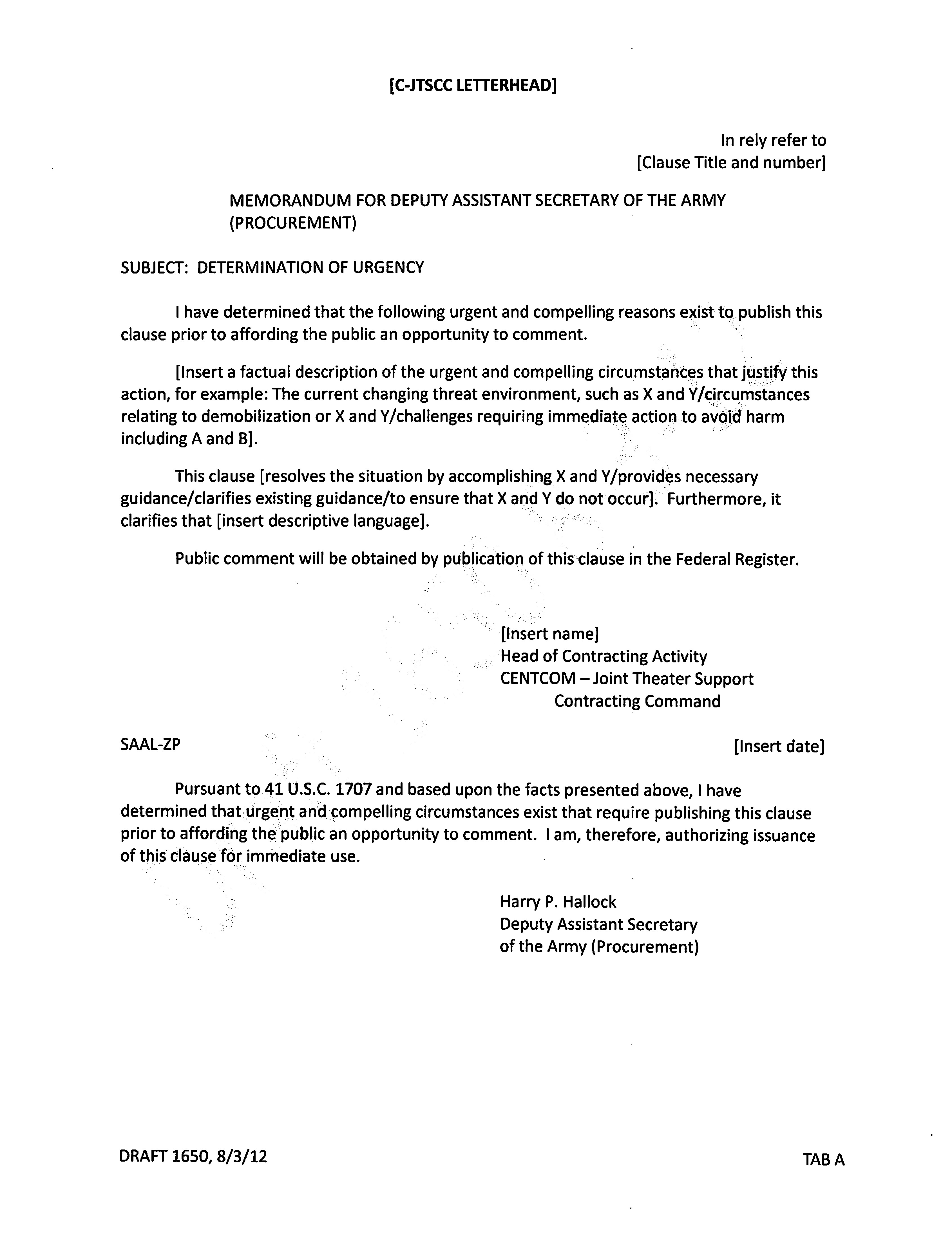 (1) Obtain Deputy Assistant Secretary of the Army (Procurement) (DASA(P)) approval to use clauses that do not require DPCAP approval and do not require publication in the Federal Register for public comment, but are included in contracting activity AIs or clause books.