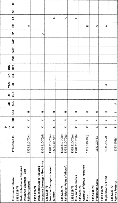 Subpart 1352.3 - Provisions and Clauses Matrix